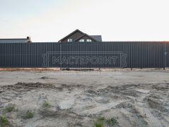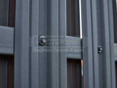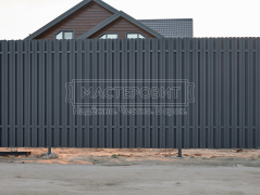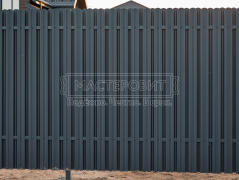 - Установка забора: вертикальный забор из евроштакетника Finfold, в шахматном порядке, двустороннее порошковое матовое покрытие, цвет RAL 7024 (графит).