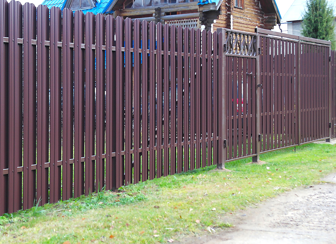 Створка ворот, как правило, обшивается тем же материалом, что и весь забор. Она должна быть изготовлена из металлического профиля такого размера и толщины, чтобы выдержать материал обшивки.