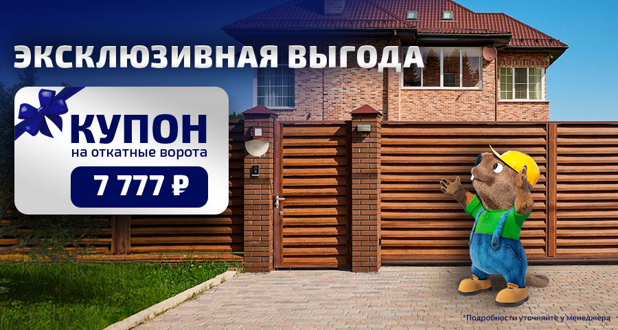 Купон на 7 777 ₽ — ваша выгода при покупке откатных ворот!