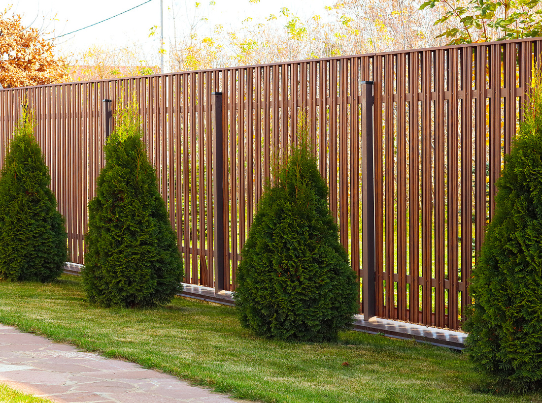 Обшивка откатных ворот евроштакетником позволит сохранить продуваемость участка. Конструкция не будет испытывать серьезных ветровых нагрузок.